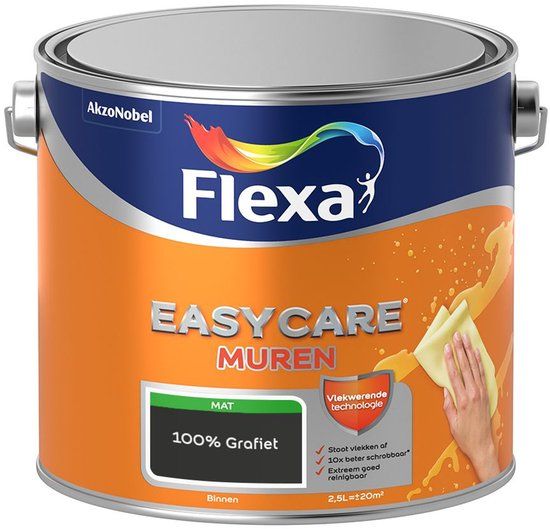 FLEXA Easycare Muurverf - Mat - Mengkleur - 100% Grafiet - 2,5 liter - Reinigingsmiddelen op waterbasis