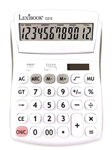 Lexibook C212 - Bureaurekenmachine - 12 cijfers - Opvouwbaar display - Wit/grijs - Rekenmachine - standaard