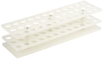 Reageerbuizenframe, robuust en duurzaam voor dagelijks gebruik in laboratoria, van natuurkleurig polypropyleen Zeer goede chemische bestendigheid. Schroefverbindingen van roestvrij staal. Autoclaveerbaar tot 121 °C. Biologische eigenschappen: niet giftig op celculturen