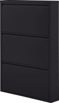 Deze slanke schoenenkast komt uit de collectie van het Nederlandse interieurmerk WOOOD en oogt onopvallend door het greeploze design. De Sabine schoenenkast heeft drie praktische opbergvakken, ruimte genoeg voor jouw sneakercollectie.