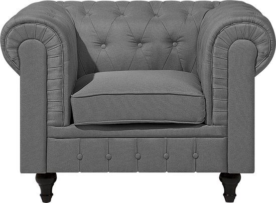 Beliani CHESTERFIELD L Chesterfield Fauteuil - Grijs - Polyester - Retro & Vintage