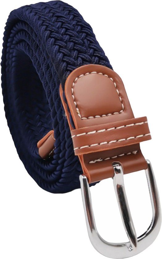 Fako Fashion® - Elastische Gevlochten Riem Smal - Navy Blauw - 105cm - Riemen