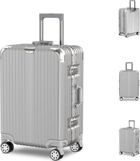 Voyagoux® AEON 72L Hardcase Koffer - Zilver - Aluminium Frame - Rolkoffers