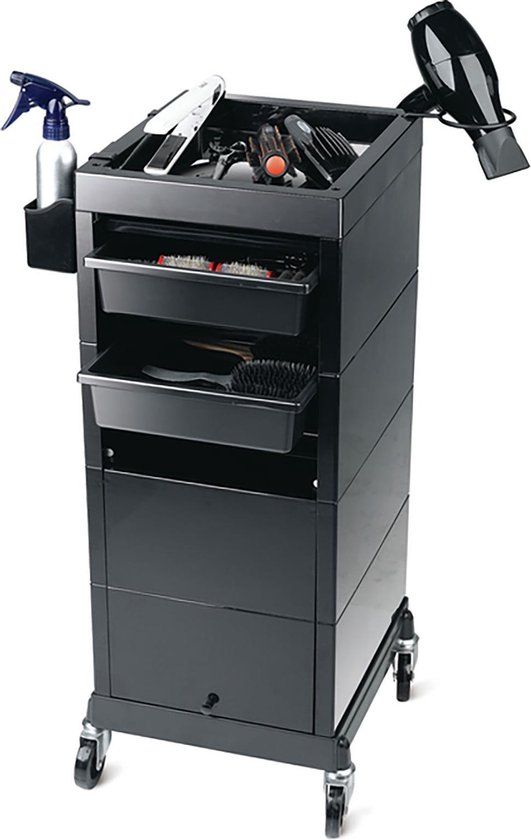 Sibel Discrete Werkwagen Kapper - Zwart - Rollende gereedschapskisten