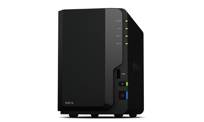 Versatile NAS server for centralized file storage and real-time 4K H.265 video transcoding\nSynology DS218 comes with a new 64-bit quad-core processor, delivering excellent data transfer speed, large storage volume management, and 10-bit 4K H.265 video transcoding on the fly. \n\nUltimate file management and sharing\nFile Station is a web-based, fast and secure management tool built to allow easy, drag-and-drop operation without requiring any complex setup on Mac or PC. Advanced search and filtering tools allow for easy organization and sharing of files with just a link. Supports SMB, FTP, AFP, NFS, WebDAV, compatible with any environment.\n\nSynchronize files across your devices\nCloud Station Suite provides real-time data synchronization across all your devices and other Synology NAS. "Intelliversioning" keeps the most important file versions to better utilize storage space.\n\nEasy backup solutions\nBack up any computer or mobile device with Synology's comprehensive multi-versioning backup solution. You can protect your computer and NAS against malicious attacks including the rising encryption-based ransomware threats.\n\nEasy file access with QuickConnect\nAccess files on your Synology NAS over the Internet without the hassle of setting up port forwarding rules, DDNS, or other complicated network settings. QuickConnect allows you to connect via a secure, customizable address, so that you can instantly access media and work files on any Internet-connected device with no additional charge.\n\n4K Multimedia Server\nAccess and stream your favorite 4K content anywhere, anytime. DS218 supports 10-bit 4K H.265 online transcoding. With Video Station and DS video, you can convert and play 4K videos from any computer, mobile device, or other media players that don't support Ultra HD formats.\n\n- Quad-core 1.4GHz\n- 2GB DDR4\n- Over 112 MB/s and 112 MB/s sequential read and write\n- Surpass 16TB per single volume
