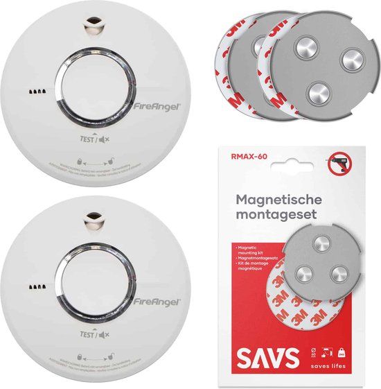 FireAngel ST-622 Rookmelderset + magnetische montagesets 2-pack - 10 jaar batterij - Wit