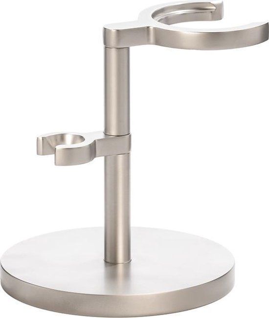Handige en robuuste houder van gematteerd roestvaststaal (RVS), speciaal voor de Muhle ROCCA scheerkwast en veiligheidsscheermes. Sober en strak design.