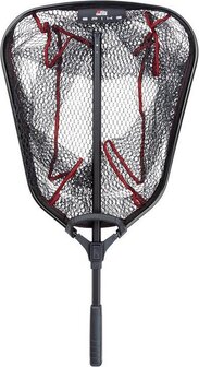Afmetingen: 60 x 50 cm (lengte x breedte). Diepte: 70 cm Super stabiel, solide netframe Speciale hefgreep voor optimale controle en kracht Extra stevig met rubber beklede netstof Extra sterke eendelige mesh-handgreep
