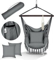 Tillvex Hangstoel - Grijs - Met 2 Kussens - Hangende Schommel - Bekerhouder