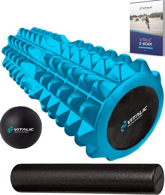 TWEE FOAM ROLLERS - De Vitalic foam roller set bestaat uit twee rollers. Een roller met grove punten voor een deep tissue massage en een zachtere roller voor wanneer je last hebt van spierpijn waardoor een lichtere massage fijner is. Deze set biedt dus een oplossing voor elk ongemak.