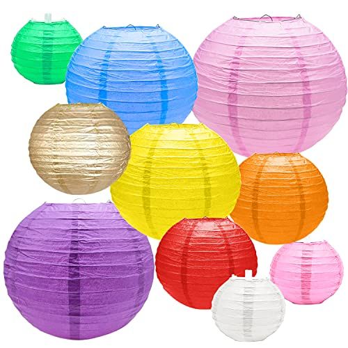 UGBO Papieren Lantaarn Gekleurde Lampionnen Lampenkap Ronde Papieren Lantaarns 20 Stuks Meerkleurige Lampions Paper Lamp Lampion Voor Buiten Tuin Familievieringen Bruiloften Feest Decoratie Lampionen (4 \" 6 \" 8 \" 10 \" 9 Kleuren)