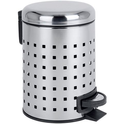 WENKO cosmetica pedaalemmer citroen met gatpatroon, 3 liter, badkamer-vuilnisemmer, kleine afvalemmer met uitneembare inzet, van roestvrij staal, 17 x 25 x 22,5 cm, glanzend