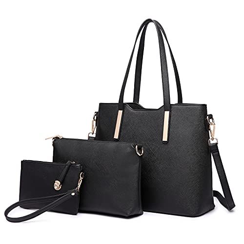 MISS LULU Handtas Vrouwen Schooltassen Tas dood 3-delige Hobo Set Boodschappentas (Zwart)