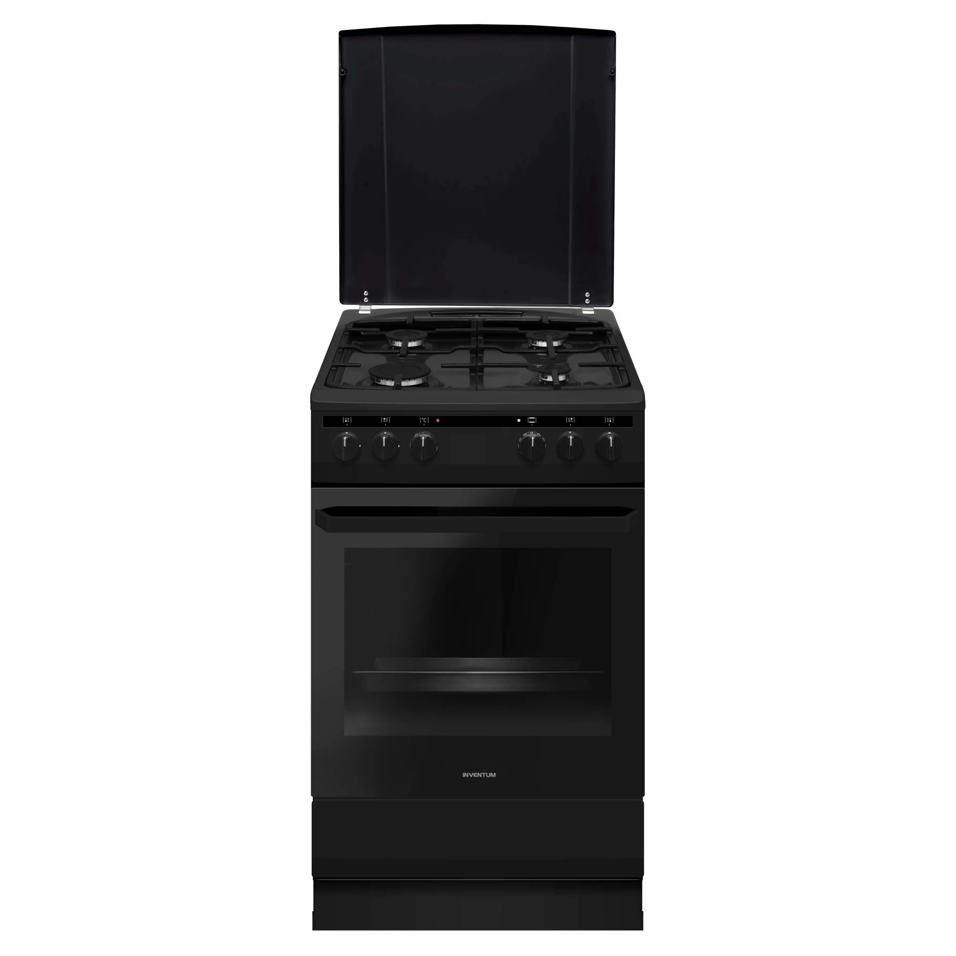 Inventum VFG5020GZWA - 50 cm vrijstaand gasfornuis met elektrische hetelucht oven - Zwart