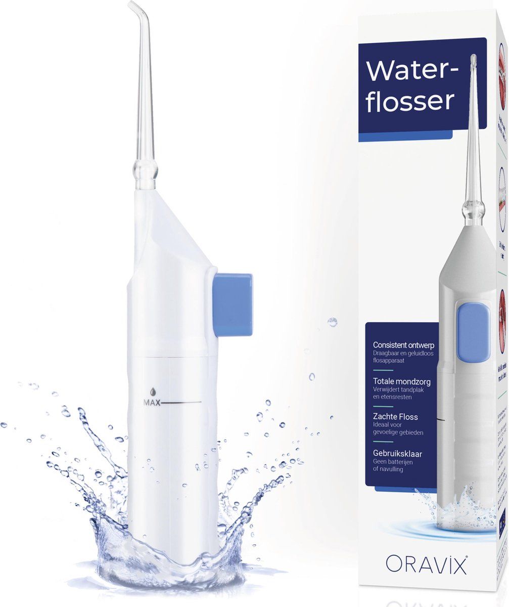 Oravix Draagbare Waterflosser | Reinigt Beugels, Implantaten, Kronen | Draadloze Water Flos | Amandelstenen Verwijderen | Geen Elektriciteit of Batterijen Nodig | Water Flosser | Flossen met Water |