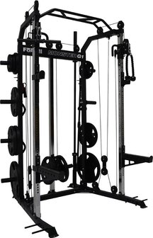 Het heeft alle kwaliteiten van een multipower, gecombineerd met de dubbele katrol en ondersteuning voor multi-grip pull-ups. Dit geeft niet alleen verschillende prikkels aan de vezels, het voegt ook veel meer oefeningen toe aan onze training.