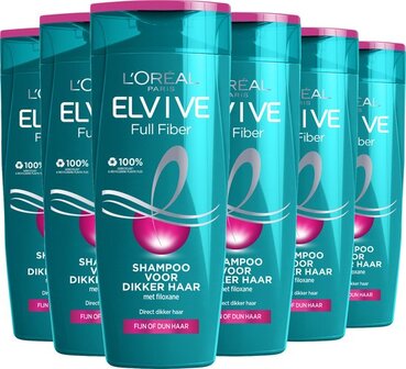 FULL FIBER\nVOOR FIJN OF DUN HAAR\nHelaas is niet iedereen gezegend met een mooie dikke bos haar. Daarnaast is het dunne of fijne haar is niet het makkelijkste haar om een leuk kapsel mee te creëren. FULL FIBER van L’Oréal Paris is speciaal ontwikkeld voor haar dat dikte mist. Hiermee kan je elke volumineuze look modelleren die je altijd al had willen hebben.\n\nDe gepatenteerde technologie van FULL FIBER op basis van filloxane helpt de haarvezel te verdikken. Het filloxane dringt door in het haar en verspreidt zich binnen de haarvezel om de diameter van iedere haar te vergroten. Het vullende effect is opbouwend, waardoor het haar steeds dikker wordt.\n✓ Verdikt het haar onmiddelijk \n✓ Wasbeurt na wasbeurt dikker haar\n✓ Voor een volumineus effect\n\nVoor een vollere look volg je de Elvive Full Fiber haar verzorging routine:\n 1 Was je haar met de FULL FIBER SHAMPOO. Deze verdikt het haar waarneembaar van binnenuit. \n 2 Breng de FULL FIBER DIKTE CREËRENDE CONDITIONER aan op de lengtes en punten van het haar. De lichte conditioner trekt snel in en zorgt voor een direct gevoel van dikker haar.\n 3 Om de routine af te maken, gebruik je het FULL FIBER HAARMASKER. Vervang 1 à 2 keer in de week de conditioner door het masker. Verdeel het haarmasker gelijkmatig over de hele lengte van het gewassen haar en spoel vervolgens uit. Er is geen inwerktijd nodig. Deze geeft perfecte voeding en een optimale bescherming en zorgt hiermee voor een extra boost.\nExtra tip: Föhn je haar droog van de aanzet naar de punten, om een maximaal volume effect te krijgen.\nExtra tip: de FULL FIBER AIR DROOGSHAMPOO geeft het haar zonder het gebruik van water een volume boost, voor een frisse en volumineuze look in één handeling. Gebruik het in de ochtend voor fris haar of elk moment van de dag als een touch-up voor een volume boost en een verfriste look.