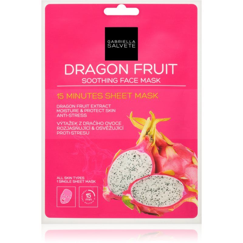 Gabriella Salvete Face Mask Dragon Fruit, 1 st, Gezichtsmasker voor Vrouwen , Het huidmasker Gabriella Salvete Face Mask Dragon Fruit zal je huid verwennen en verzorgen. Kenmerken: hydrateert in de diepte en voedt intensief verheldert en verfrist ontgift de huid irriteert de huid niet Ingrediënten: veganistisch product Hoe te gebruiken: Verwijder het masker voorzichtig van de verpakking en plaats het op het gereinigde gezicht. Laat het product inwerken gedurende de op de verpakking aangegeven periode. Masseer het niet-geabsorbeerde serum voorzichtig in je huid of veeg het af met een wattentampon.