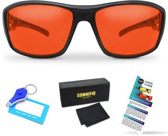 Kom je moeilijk in slaap? Of heb je vaak last van hoofdpijn en branderige ogen? Het schadelijke blauwe licht van schermen zoals laptops, telefoons en tv’s kan een grote impact hebben op je slaapkwaliteit en gezondheid. De Somnifiq Slaapbril is speciaal ontwikkeld om dit probleem aan te pakken. De speciale rode lenzen blokkeren maar liefst 98% van het blauwe licht, waardoor je ogen tot rust komen en de aanmaak van melatonine wordt gestimuleerd. De bril heeft een ‘wraparound fitting’ die ervoor zorgt dat er ook via de zijkant van de bril geen blauw licht meer binnendringt. Met een comfortabele pasvorm, ultralicht gewicht (23.8 gram) en handige accessoires zoals een opbergcase en microvezel schoonmaakdoekje, is de Somnifiq Slaapbril jouw perfecte hulpmiddel om blauw licht de baas te zijn en weer heerlijk te kunnen slapen.