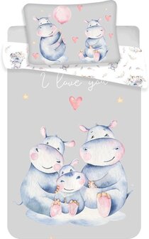 Animal Pictures Baby Dekbedovertrek Nijlpaard - 100 x 135 cm - Katoen - Grijs - Slaapzakken en inbakerdoeken voor baby's