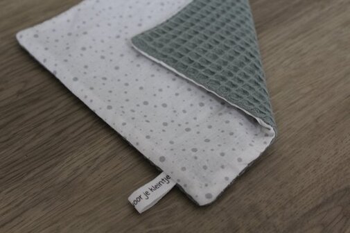 Speendoekje met de afmeting 20x20, in verschillende kleuren met verschillende stoffen, ook leuk te combineren met het bijpassende dekentje!