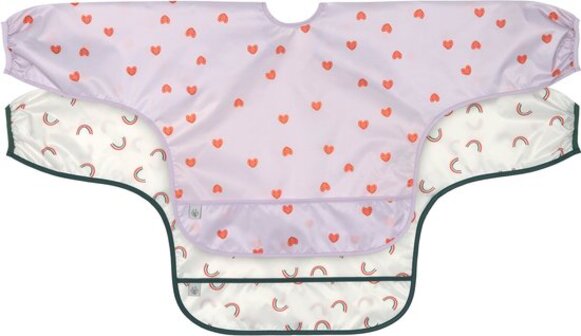 Lässig Slab met Mouwen - 2 Stuks - Happy Rascals Heart Lavender - 6-24 Maanden - Unisex - Slabbetjes voor babyvervoer
