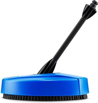 De patiocleaner compact kan gebruikt worden op de Nilfisk Compact serie hogedrukreinigers. De patiocleaner is geschikt om kleine oppervlaktes intensief te reinigen. De roterende draaiarm roteert door de druk van de machine. Er komt uit beide uiteinde van de rotorarm een krachtige straal. Het vuile water blijft onder de kap waardoor u en de omgeving "schoon" blijft. De patiocleaner wordt op de lans van de hogedrukreiniger bevestigd door het Click en Clean systeem. Na gebruik raden wij aan om de patiocleaner schoon te maken na gebruik.