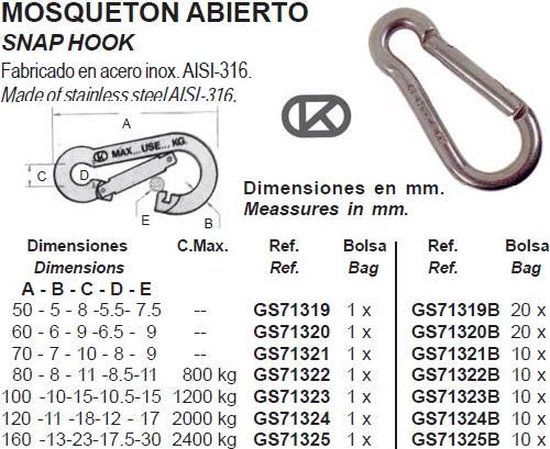 Bestelnummer per stukBestelnummer meer stuksABCDEMax. gewichtGS71319GS71319B (20)50 mm5 mm8 mm5 mm7 mm GS71320GS71320B (20)60 mm6 mm8,5 mm5 mm8 mm GS71321GS71321B (10)72 mm7 mm10,5 mm8 mm10 mm GS71322GS71322B (10)80 mm8 mm11,5 mm8,5 mm10 mm800 kgGS71323GS71323B (10)103 mm10 mm14 mm10 mm15,5 mm1200 kgGS71324GS71324B (10)120 mm10,5 mm17 mm14 mm17 mm2000 kgGS71325GS71325B (10)160 mm13 mm22,5 mm18 mm30 mm2400 kgHeb jij dit product in bezit en wil je graag je mening geven? Start dan hieronder met het schrijven van je review. Afhankelijk van de details duurt het schrijven van een review gemiddeld tussen de 3 en 10 minuten. Met jouw mening help je andere bezoekers een betere keuze te maken én maak je iedere maand kans op €250,-! Klik hier voor de actievoorwaarden.