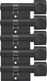 DOM Zwarte knopcilinder Plura 30/30mm - SKG 3 sterren - 5 gelijksluitende knopcilinders - Sleutelgatplaatjes voor deuren