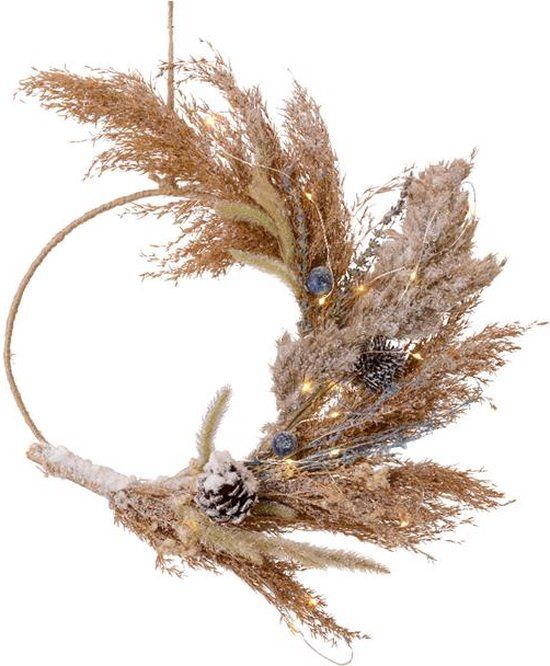 Lumineo Krans met droogbloemen met verlichting - beige - Slingers
