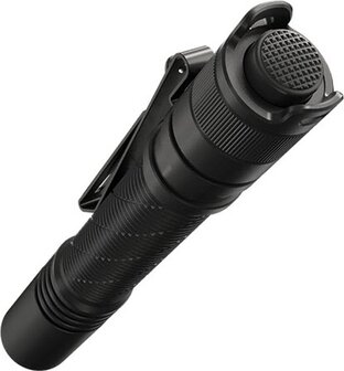 De lamp heeft een zwarte luchtvaart aluminium behuizing met een HAIII hard geanodiseerde coating en is voorzien van CNC gefreesde antislip kartels waardoor je de lamp prima kunt vasthouden zelfs als je zweterige en natte handen hebt of als je handschoenen draagt. De U-vormige eindkap is ontworpen om ervoor te zorgen dat de lamp niet per ongeluk aangezet wordt en biedt ook de mogelijkheid om de lamp rechtop te laten staan. Tevens is deze lamp stof- en waterdicht volgens IP68 en heeft het een valweerstand van 1 meter. De optische lens is aan beide zijden voorzien van een antikras coating. En uiteraard ontbreekt de innovatieve ATR temperatuurregeling niet! Daarnaast is er ook nog een beveiliging tegen omgekeerde polariteit. De lamp heeft een verwijderbare tweezijdige broekriemclip ideaal voor bevestiging aan broekzakken, rugzakken en meer.