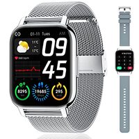Popglory Smart Watch beantwoorden/bellen en 2 riemen, 1,8 inch grote smartwatch voor dames en heren, fitnesshorloge bloeddruk/zuurstof/hartslagmeter, stappenteller voor iPhone en Android