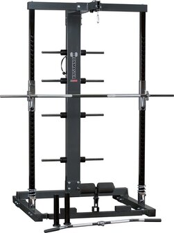 De IM2000 Smith Machine is de beste smith machine in de markt. Het gepatenteerde Quick Lock halter systeem heeft een ongeëvenaard natuurlijk gevoel. De blokkeergaten zijn nauwkeurig afgemeten en geplaatst op korte afstanden van 4,3 cm. Extra veiligheid spotters bieden bescherming en beperken het bereik van het kabelsysteem indien gewenst. Daarnaast zijn er verschillende attachments beschikbaar die van de IM2000 een complete home gym maken. Dat bespaart ruimte en biedt ongelimiteerde trainingsmogelijkheden met maximale veiligheid.