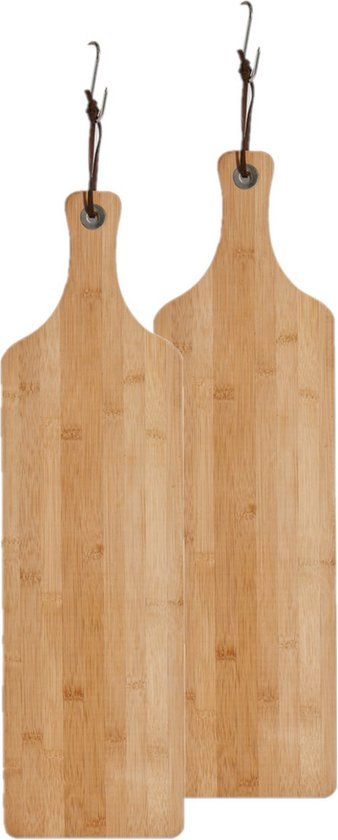 2 stuks tapas serveerplank. Breng sfeer en stijl naar tafel met deze elegante bamboe serveerplank van Zeller. Met een lengte van 57 cm en een praktische breedte van 16 cm is deze plank ideaal voor het serveren van tapas, kaas, charcuterie, brood of andere hapjes. Gemaakt van duurzaam bamboe hout, is de plank niet alleen robuust en hygiënisch, maar ook een echte blikvanger op elke borrel of diner.