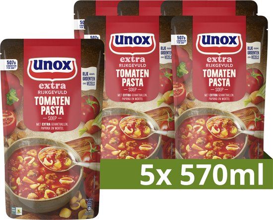 • Unox Extra Rijkgevuld Tomaten Pasta Soep in Zak is een heerlijke soep