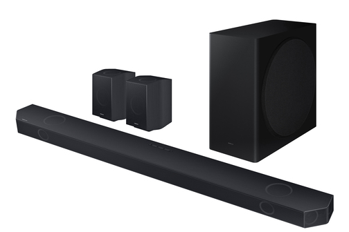 Dankzij de 9 voor- en surroundkanalen, 1 subwooferkanaal en 4 opwaarts gerichte kanalen van de Soundbar word je omringd door geluid. De Soundbar uitgerust met achterspeakers. Deze weerkaatsen het geluid van het plafond voor een nog betere surround sound-beleving. Hij is uitermate geschikt voor je QLED TV.