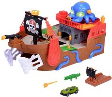 Dickie Toys - piratenschip - uitgebreide speelgoedboot (41,5 cm) voor kinderen vanaf 3 jaar met autoracebaan, speciale effecten, licht en geluid, geschikt als zwemspeelgoed en zwembannerspeelgoed Aaaaahrr - op ga's piraten! Op het schip, waar zelfs autofans op hun kosten komen. Het piratenschip van Dickie is het perfecte cadeau voor kleine en grote fans van boten en auto's, want het combineert beide! En er is ook een gevaarlijke octopus. Dat zorgt voor een goede spanning. Dankzij de kleurrijke en liefdevolle vormgeving en talrijke functies ziet het schip er niet alleen geweldig uit, maar zorgt het ook voor langdurig speelplezier. Licht en geluid in het piratenschip en in de octopus doen niet alleen iets voor het oog, maar ook voor de oren. Accessoires waarmee uw kinderen kunnen communiceren, laten het geheel dan nog meer zien. De kanon heeft een vuurfunctie en onderdelen zoals een metalen auto, een krokodil, vaten en een schatkist completeren de ervaring en stimuleren de fantasie. Met de genoemde speelgoedauto kunt u op het schip overigens veel beleven. Dit kan van boven tot onder doorrijden en daarbij meteen verschillende wegen nemen. Met behulp van een hendel kan de auto zelfs via een helling door de voorkant van het skelet rijden en een plank zorgt ervoor dat het voertuig in het water wordt geslingerd. De teksten voor dit artikel zijn automatisch vertaald.