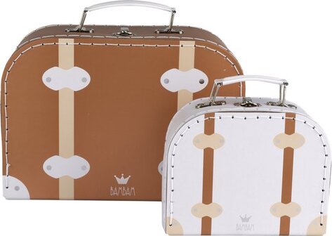 Stoer "old style" koffertje van bruin karton. Leuk voor op de babykamer!