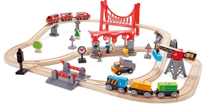 Hape Treinset 51-delig - Houten Spoorbaan Set - Multicolor - Speelgoedtreinen en treinsets