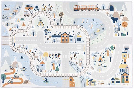 We beginnen met het beklimmen van de bergpassen op de fiets, maken dan een wandeling om de bergdieren te ontdekken, voordat we naar de manege gaan voor een ritje te paard. Met hun stoffen speelmat ontwikkelen kinderen hun verbeelding en woordenschat, maar ook hun observatievermogen. De kleintjes kunnen zelfs vormen en getallen ontdekken! Nog een pluspunt van deze speelmat: hij is antislip! Perfect om speelgoedautootjes op te laten rollen, of gewoon voor kleintjes die graag in beweging blijven. Met zijn formaat van 120 x 78 cm biedt deze mat voor kinderkamers nog meer speelmogelijkheden met zijn accessoires (apart verkrijgbaar): hij kan worden aangevuld met een reeks voertuigen en houten blokken, ook uit ons Cross Roads assortiment. Je kunt deze bergmat ook koppelen aan andere matten uit de collectie, om een gigantische speelruimte te creëren en de avonturen van kinderen uit te breiden. De circuits zijn ontworpen om aan alle 4 de zijden van de mat te koppelen. Laten we de nachttrein nemen!