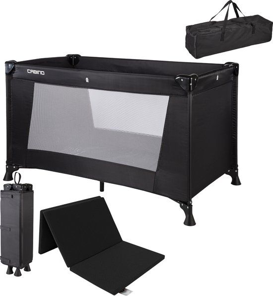 Cabino Campingbedje / Reisbedje - 120x60 cm - Zwart - Inclusief Matras - Speelplaatsen