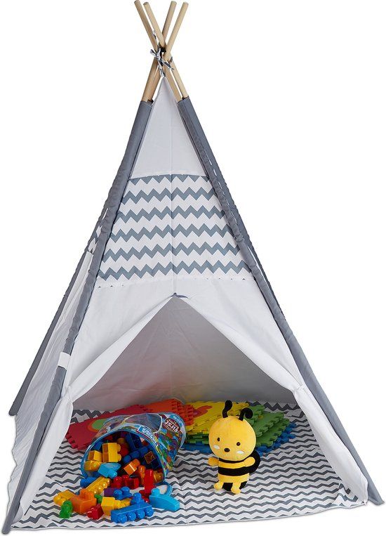 Relaxdays Tipi Speeltent Kind - Indianentent - Wigwam - Grijs/Bruin - Speeltenten en -tunnels