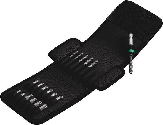 • 1 Rapidaptor universeel wringijzer. Respectievelijk 1 metaalspiraalboor 3,0 x 38 mm / 4,0 x 44 mm / 4,2 x 45 mm / 5,0 x 50 mm / 6,0 x 50 mm / 8,0 x 51 mm. 12 bits 25 mm: 2 bits PZ 1, 3 bits PZ 2, 1 bit PZ 3. Respectievelijk 1 bit TX 10 / TX 15 / TX 20 / TX25 / TX 30 / TX 40.