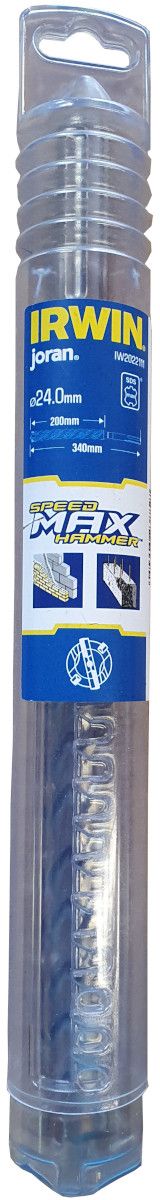 Irwin Joran SDS-max betonboor met 2 massieve snijvlakken en 2 individuele snijtanden. De boor heeft een diameter van 24,0 mm, is 340 mm lang en heeft een werklengte van 200 mm. De Irwin SDS-max betonboor is geoptimaliseerd voor snel en efficiënt boren, zelfs door gewapend beton. SDS-max betonboren passen op een boorhamer of combihamer met een SDS-max boorkop. SDS-max boren hebben een schacht van 18 mm met drie sleuven. Hierdoor kunnen ze niet slippen in de boorkop.
