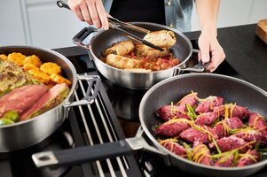 Dankzij de krachtige bakkwaliteit van deze Silience Pro koekenpan van Rösle heb je alles perfect onder controle zoals een echte professional! Bak de meest malse biefstukjes of een verse vis perfect gaar zonder dat je hier veel boter of olie bij nodig hebt. Met de ingekapselde aluminium kern wordt de warmte evenredig en snel over de pan verspreid terwijl hij tegelijkertijd een hittebestendigheid van wel 200 °C heeft. De koekenpan is verder voorzien van een speciale ProResist non stick coating waarbij ingebouwde siliciumcarbide deeltjes het oppervlak verharden en extreem duurzaam maken. Hierdoor is het oppervlak van de koekenpan zelfs geschikt voor het gebruik van metalen keukengerei (pas hier echter wel mee op!). Verder is de pan uitgerust met een drupvrij schenkrand en een steel met een hittebestendige siliconen coating voor extra grip. Wist je trouwens dat deze steel kan dienen als een slim plankje om je keukengerei op te bewaren? Ideaal wanneer je tijdens het koken je lepel of spatel even wilt neerleggen. De koekenpan is geschikt voor alle hittebronnen, inclusief inductie en de oven. Na gebruik kan hij worden schoongemaakt in de vaatwasser, maar met de hand afwassen is aan te raden voor een langere levensduur.