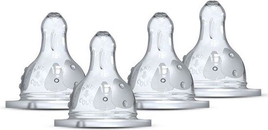 Set bestaande uit 4 ronde fopspenen 3 snelheden (stroomsnelheid 1 - Langzaam - 0-6 maanden). Het systeem met 3 snelheden past zich aan het zuigritme van uw kind aan en vergemakkelijkt de doorgang van ingedikte melk. Deze fopspeen is voorzien van een gepatenteerd dubbel antikrampjesventiel.