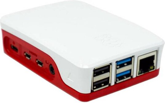 Deze rood/witte behuizing voor de Raspberry Pi 5 is een verfijning van de Raspberry Pi 4 behuizing, met verbeterde thermische eigenschappen om het hogere piekverbruik van de Raspberry Pi 5 te ondersteunen. Hij bevat een ventilator met variabele snelheid, die wordt gevoed en bediend via de speciale connector op de Raspberry Pi 5.