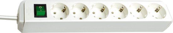 Brennenstuhl Eco-Line Stekkerdoos - 6-voudig - Wit - 1.5m - Met schakelaar - Stekkerdozen en piekspanningsbeveiliging