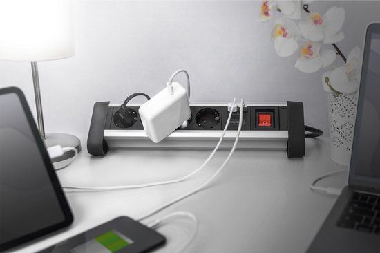 Digitus DA-70614 - Stekkerdoos met schakelaar - Aluminium, Zwart, Zilver - 4-voudig - Stekkerdozen en piekspanningsbeveiliging