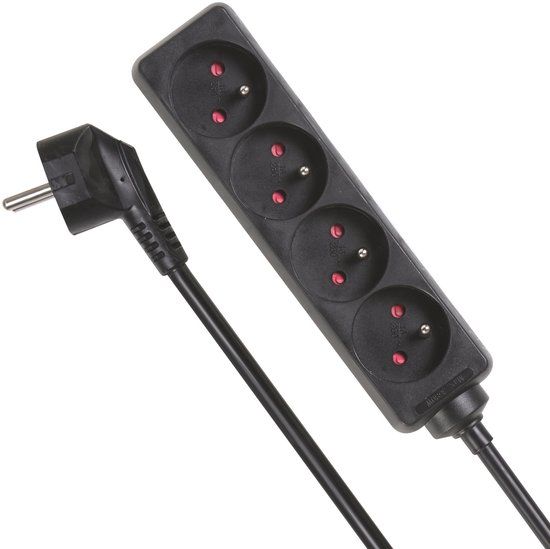 Perel Stekkerdoos - 4 stopcontacten - Zwart - Stekkerdozen en piekspanningsbeveiliging